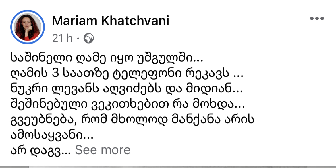 აივანზე გამოვედით… დედიკომ თქვა ცუდი ამბავი რო იყოს, კივილი მოგვესმებაო, სტიქიის დროს მურყმერიდანაც კი ისმოდა კივილიო…