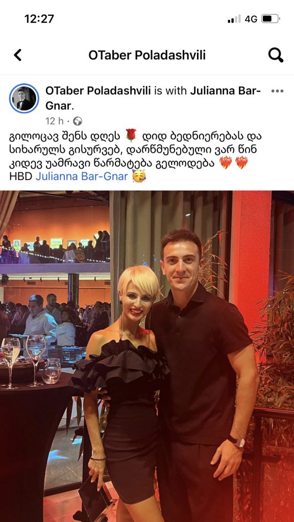 მოცეკვავე ჯულიანა ბარ-გნარი 22 ივლისს იუბილარია. ჯულიანას მისი მეწყვილე ოთო ფოლადაშვილი სოციალურ ქსელში ულოცავს.
