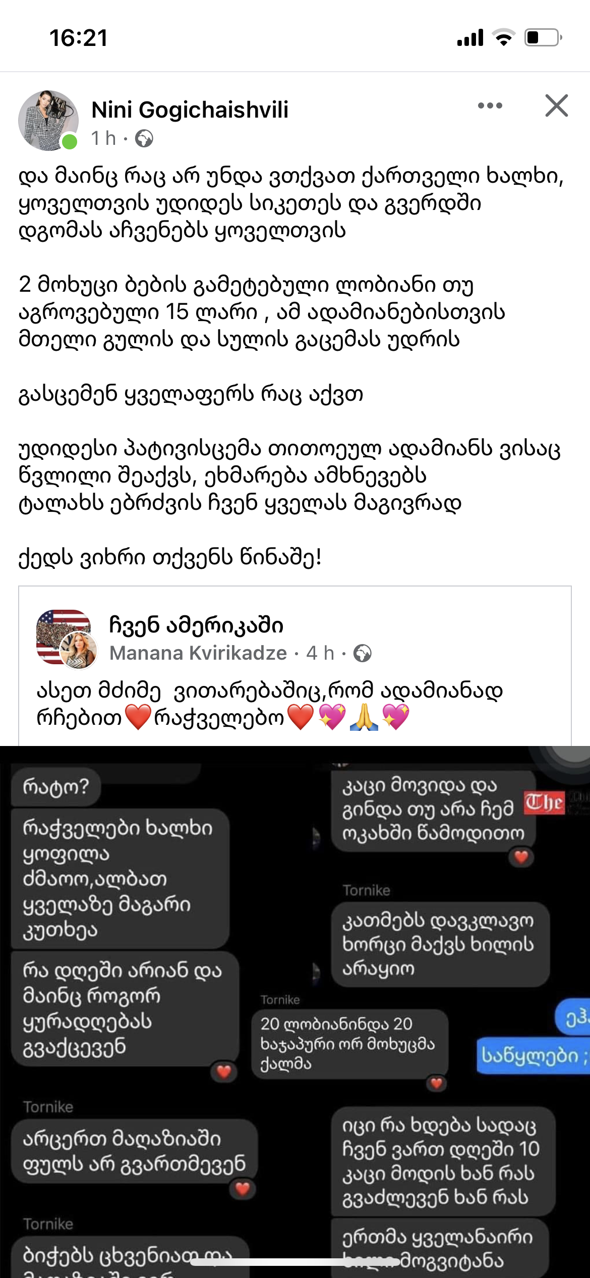 “2 მოხუცი ბების გამეტებული ლობიანი თუ აგროვებული 15 ლარი, ამ ადამიანებისთვის მთელი გულის და სულის გაცემას უდრის”