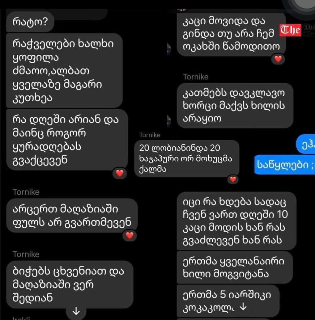 მის მიერ გავრცელებულ სქრინებში კი ვკითხულობთ: