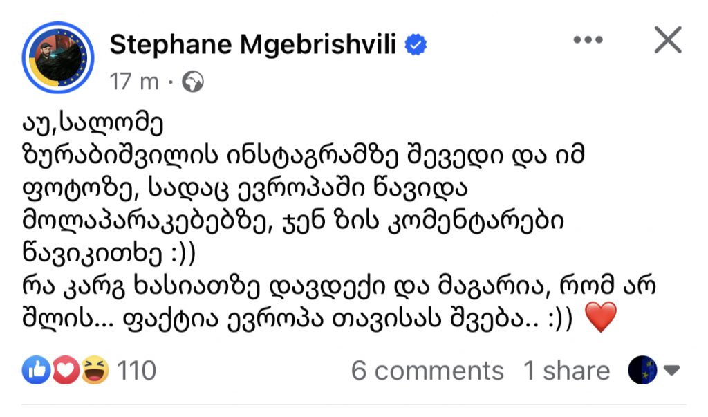 სტეფანე სოციალურ ქსელში პოსტს აქვეყნებს.