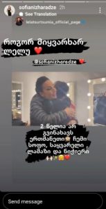 მომღერალი, სოფო ნიჟარაძე “ინსტაგრამის სთორიში” ვიდეოს აქვეყნებს, სადაც მისი და მომღერალ ლელა წურწუმიას ემოციურ შეხვედრაა ასახული.