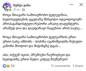 ჟურნალისტი ჯაბა ხუბუა სოციალურ ქსელში პოსტს აქვეყნებს.
