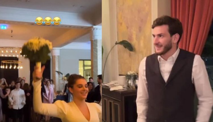 კადრებიდან ცნობილი ხდება, რომ პატარძლის თაიგული ელენე შელიამ, დაიჭირა.
