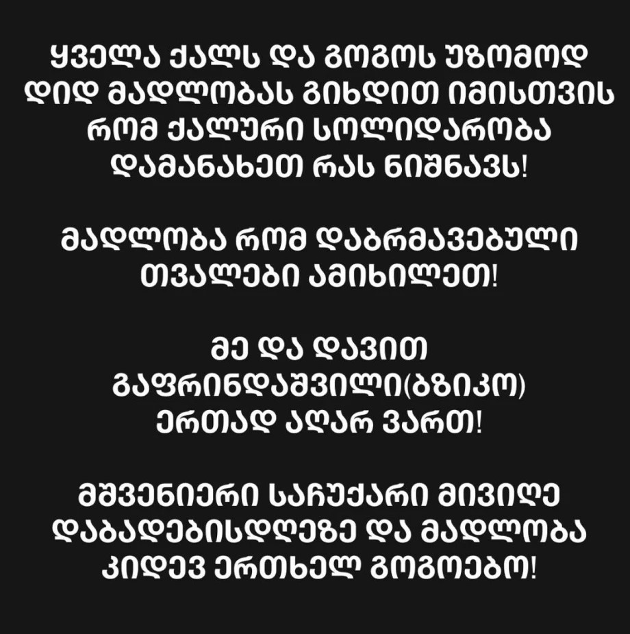 თი მაჭავარიანი ქმარს დაშორდა საზოგადოებასლაიდერი By editor გამოქვეყნდა 18.10.2023 318 გაზიარება თი მაჭავარიანი, რომელიც დღეს იუბილარია, გამომწერებისთვის მოულოდნელ განცხადებას აკეთებს. ბლოგერი და „პრაიმ ჰაუსის“ ყოფილი მონაწილე წერს, რომ მეუღლეს დაშორდა. 318 გაზიარება