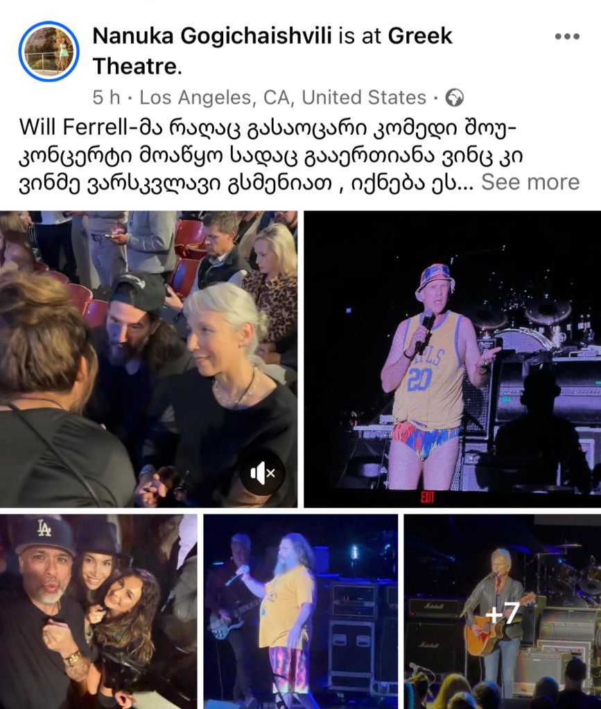 მოდელი ნანუკა გოგიჩაიშვილი ამერიკელი მსახიობის, კომიკოსისა და პროდიუსერის უილ ფერელის მიერ ორგანიზებულ კომედიურ შოუ-კონცერტიზე იმყოფებოდა, რომელიც საქველმოქმედო ხასიათს ატარებდა. როგორც ნანუკა წერს, უილ ფერელმა იმ ადამიანებს დაუფინანსა სწავლა, რომლებმაც უმძიმესი სენი დაამარცხეს.