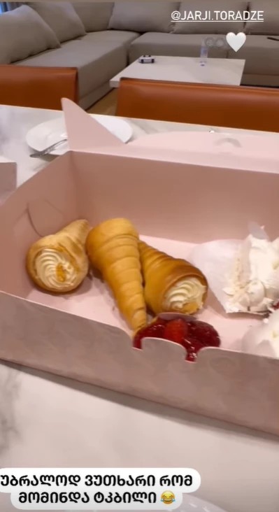 მან მისი მეუღლის ვიდეო გაგვიზიარა. „უბრალოდ ვუთხარი, რომ მომინდა ტკბილი“,- წერს თათია.