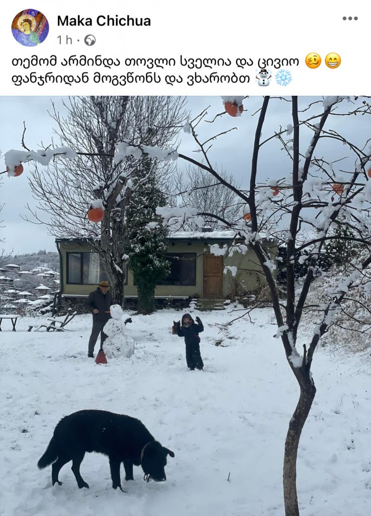 მაკა ჩიჩუა დათოვლილი დუშეთიდან მხიარულ ფოტოს გვიზიარებს სლაიდერისოც.ქსელები By editor გამოქვეყნდა 24.12.2023 376 გაზიარება მაკა ჩიჩუა დათოვლილი დუშეთიდან მხიარულ კადრებს, სოციალურ ქსელში გვიზიარებს: „თემომ არ მინდა თოვლი სველია და ცივიო.. ფანჯრიდან მოგვწონს და ვხარობთ გავიღვიძეთ და გადათეთრებული დაგვხვდა,“ – წერს მაკა. 376 გაზიარება