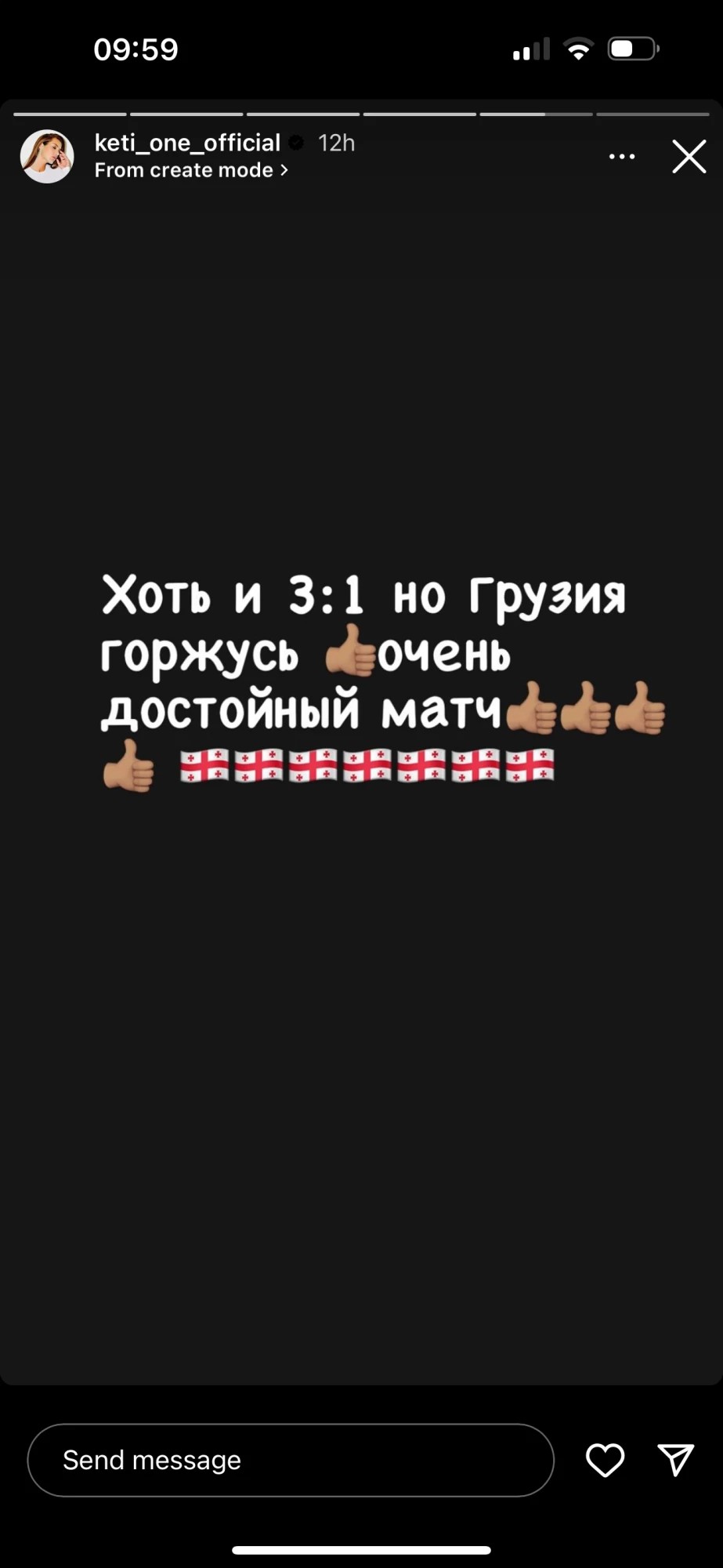 ქეთა თოფურია – ვამაყობ საქართველოთი სლაიდერისოც.ქსელები By editor გამოქვეყნდა 20.06.2024 287 გაზიარება რუსეთში მოღვაწე, ქართველი მომღერალი, ქეთა თოფურია, ოჯახთან ერთად საქართველო-თურქეთის მატჩს უყურებდა. ქეთა, სოციალურ ქსელში წერს, რომ საქართველოთი ამაყობს. “ძალიან ღირსეული თამაში იყო, ვამაყობ საქართველოთი”-წერს ქეთა. 287 გაზიარება