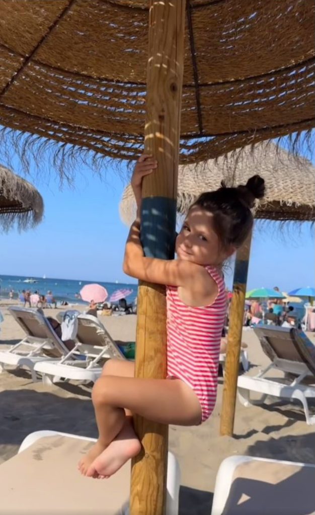 ესპანეთში გადაღებულ ახალ კადრებში პატარა ელის-მარია საცურაო კოსტიუმში პოზირებს.