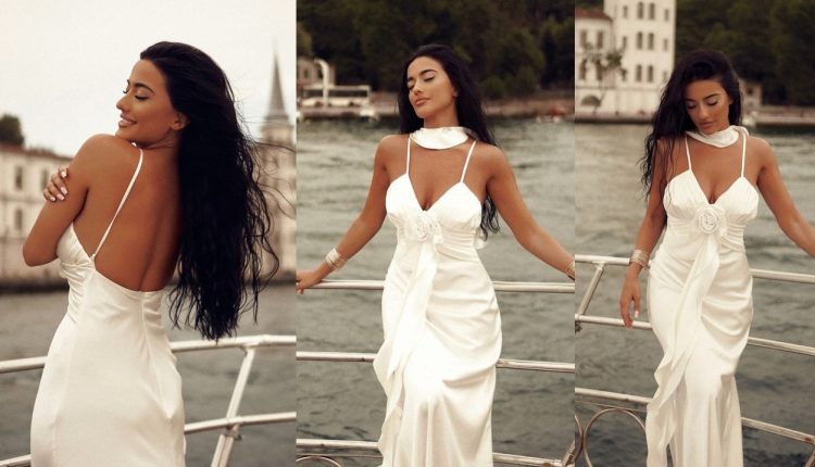 ბლოგერს საოცარი თეთრი კაბა აცვია და ფოტოსესიის კადრებში შეუდარებლად გამოიყურება.