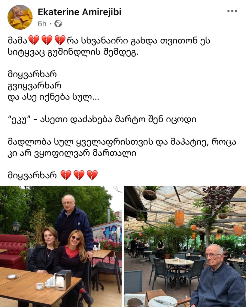 ტელეწამყვან ეკა ამირეჯიბს მამა გარდაეცვალა. სამწუხარო ინფორმაციას თავად ავრცელებს სოციალურ ქსელში.