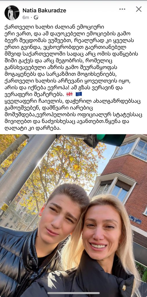 მოცეკვავე ნათია ბაკურაძე სოციალურ ქსელში პოსტს აქვეყნებს.