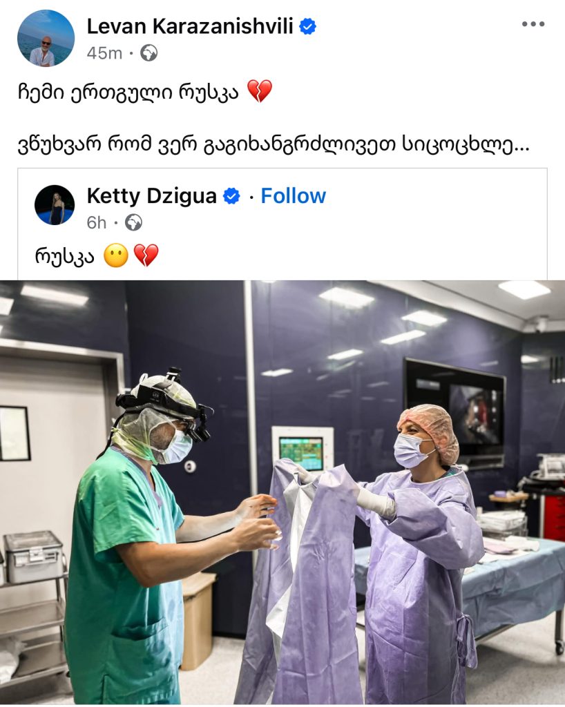 “ვწუხვარ რომ ვერ გაგიხანგრძლივეთ სიცოცხლე…” სლაიდერისოც.ქსელები By editor გამოქვეყნდა 24.01.2025 247 გაზიარება ლევან ქარაზანაშვილი სოციალურ ქსელში სამწუხარო ინფორმაციას ავრცელებს. ”ჩემი ერთგული რუსკა 💔 ვწუხვარ რომ ვერ გაგიხანგრძლივეთ სიცოცხლე…” 247 გაზიარება