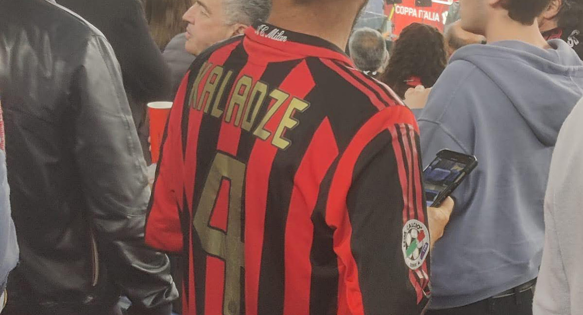 ”წეღან მეგობარმა ეს ფოტო ჩამიგდო — იტალიის თასის ფინალს ესწრება, სადაც მილანი ბოლონიას ეთამაშება. მის წინ კი ვიღაც იტალიელი, დიდი ხნის მილანის გულშემატკივარი კალაძის მაისურით ესწრება თამაშს.