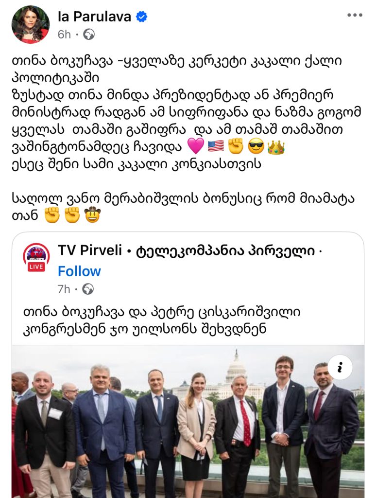 ია ფარულავა სოციალურ ქსელში პოსტს აქვეყნებს.