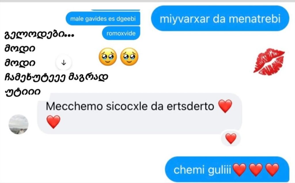 დაღუპული ბიჭის მეუღლე, გვანცა გოროზია, სოციალურ ქსელში ქმრის ბოლო შეტყობინებას ავრცელებს.