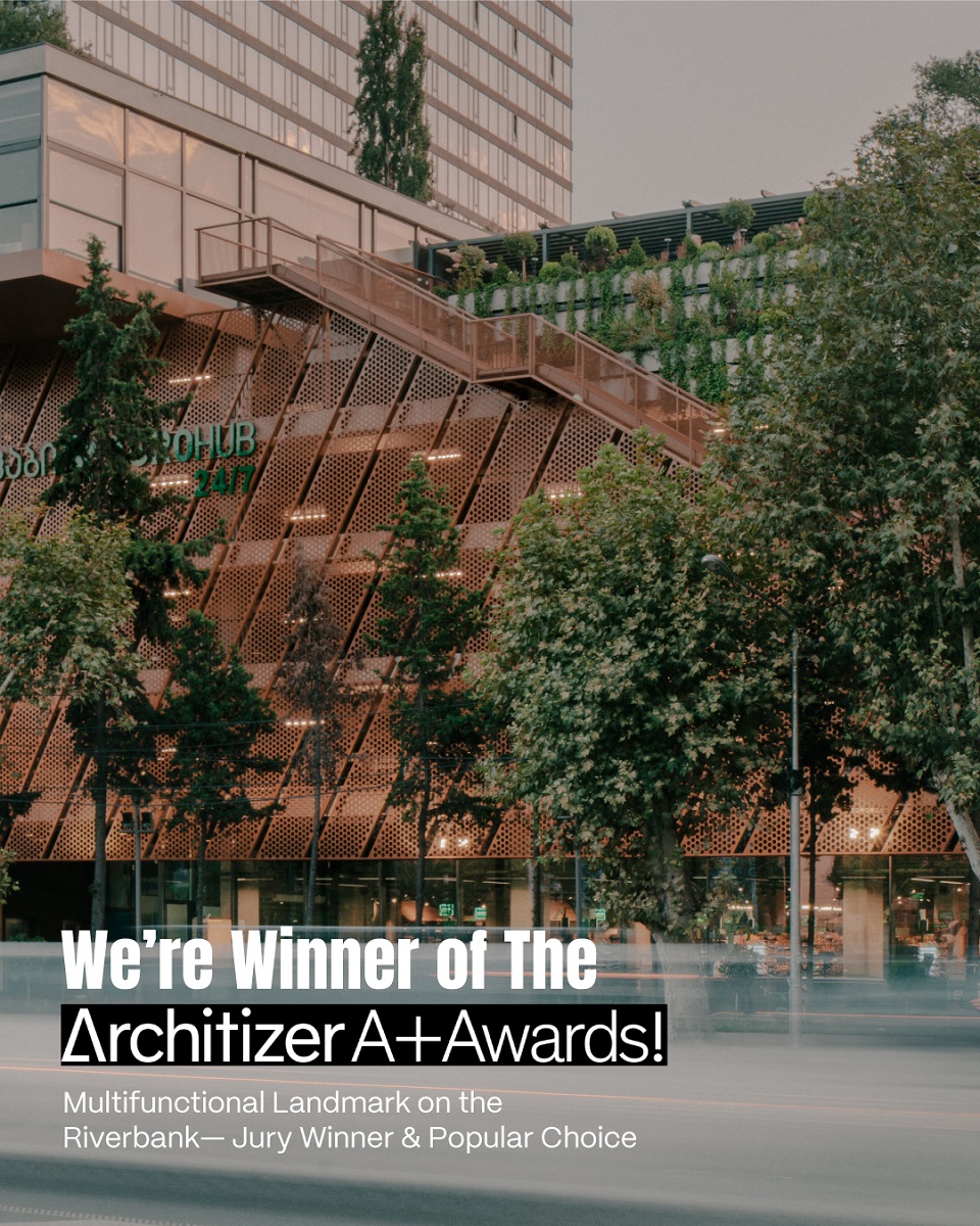 We’re proud to share that our project, Agrohub – Multifunctional Landmark on the Riverbank, has won the 2025 A+ Awards in the Mixed Use category, taking home both the Jury and Popular Choice Awards. Submissions came in from 80 countries, making this recognition even more meaningful.
