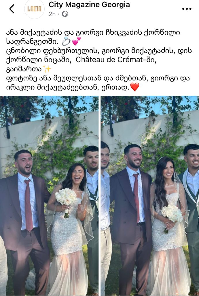 გიორგი მიქაუტაძის და ანა მიქაუტაძე გათხოვდა. ქორწილის ფოტოები სოციალურ ქსელში ჟურნალმა “სითიმ” გამოაქვეყნა.