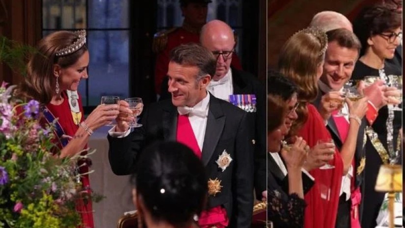 ემანუელ მაკრონი სახელმწიფო ბანკეტზე იმყოფებოდა, რომელიც სწორედ საფრანგეთის პრეზიდენტისა და მისი მეუღლის ვიზიტის პატივსაცემად, უინძორის ციხესიმაგრეში გაიმართა.