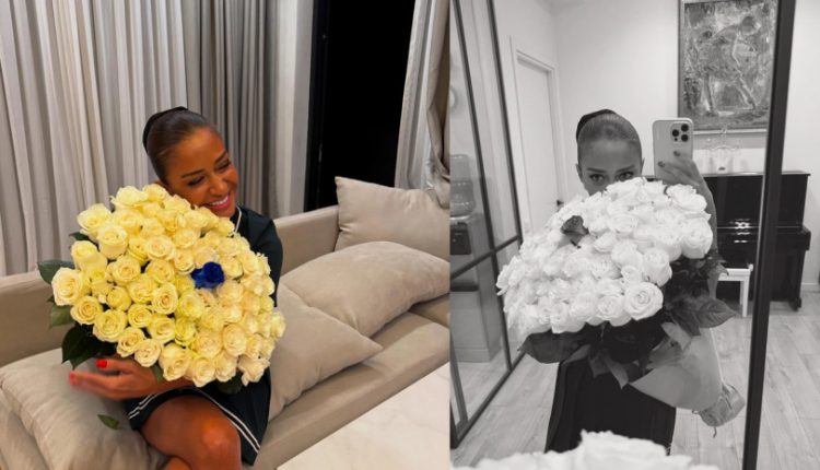 ტელეწამყვანი ამჯერად ყვავილების უზარმაზარი თაიგულით გამოჩნდა.