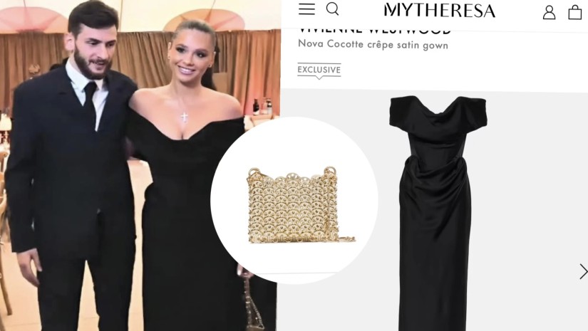 კაბა, რომელიც ხვიჩა კვარაცხელიას მეუღლემ საქველმოქმედო საღამოზე მოირგო ძალიან ჰყავს Vivienne Westwood-ის Nova Cocotte crêpe satin gown მოდელს.
