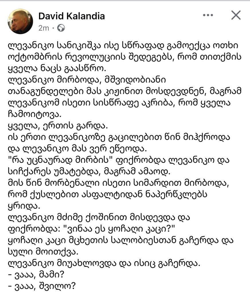 დავით კალანდია სოციალურ ქსელში პოსტს აქვეყნებს.