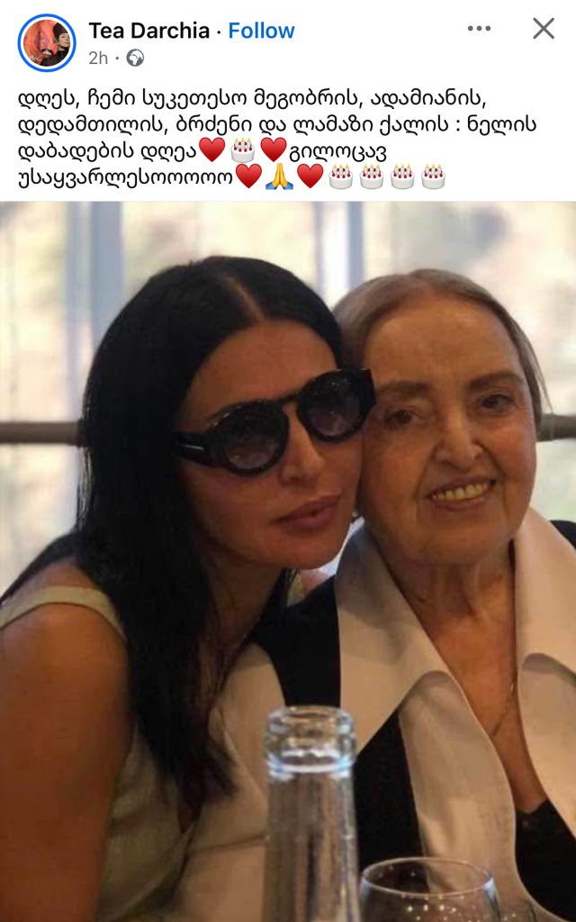 როგორ მიულოცა დედამთილს დაბადების დღე თეა დარჩიამ სლაიდერისოც.ქსელები By editor გამოქვეყნდა 10.10.2025 151 გაზიარება თეა დარჩიამ დედამთილს დაბადების დღე საჯაროდ მიულოცა. “დღეს, ჩემი სუკეთესო მეგობრის, ადამიანის, დედამთილის, ბრძენი და ლამაზი ქალის : ნელის დაბადების დღეა♥️🎂♥️გილოცავ უსაყვარლესოოოოო♥️🙏♥️🎂🎂🎂🎂” 151 გაზიარება