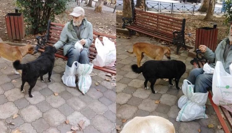 „მეგობრებო, ეს პავლე ბაბუა თავის საყვარელ მეგობრებთან ერთად, რომლებსაც თავის ისედაც მცირედ ლუკმას უნაწილებს.