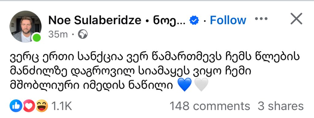 ”ვერც ერთი სანქცია ვერ წამართმევს ჩემს წლების მანძილზე დაგროვილ სიამაყეს ვიყო ჩემი მშობლიური იმედის ნაწილი 💙🤍”