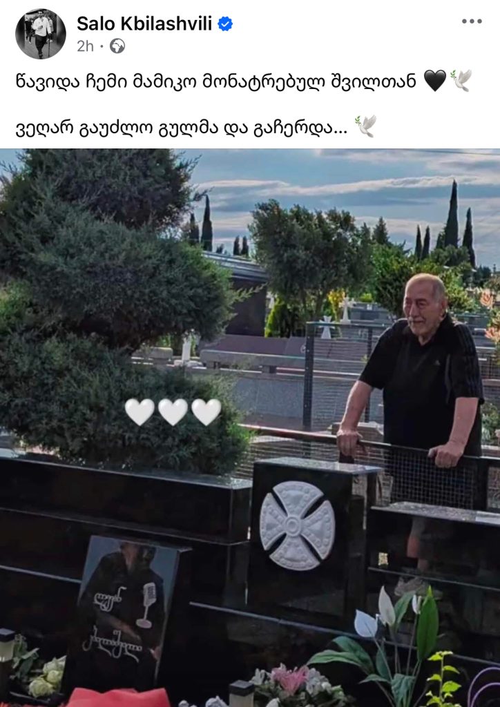 ”წავიდა ჩემი მამიკო მონატრებულ შვილთან“ სლაიდერისოც.ქსელები By editor გამოქვეყნდა 17.03.2026 7 გაზიარება მომღერალ ლევან კბილაშვილის მამა გარდაიცვალა, ამის შესახებ სოციალურ ქსელში გარდაცვლილი მომღერლის და წერს. ”წავიდა ჩემი მამიკო მონატრებულ შვილთან 🖤🕊️ ვეღარ გაუძლო გულმა და გაჩერდა… 🕊️“ 7 გაზიარება