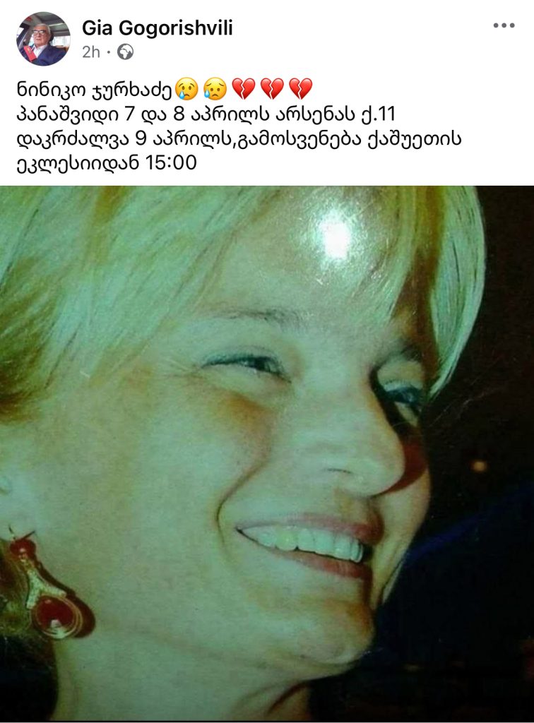 მერაბ სეფაშვილის მეუღლე ნინო ჯურხაძე გარდაიცვალა სლაიდერისოც.ქსელები By editor გამოქვეყნდა 05.04.2026 70 გაზიარება მერაბ სეფაშვილის მეუღლე ნინო ჯურხაძე გარდაიცვალა. “ნინიკო ჯურხაძე😢😥💔💔💔 პანაშვიდი 7 და 8 აპრილს არსენას ქ.11 დაკრძალვა 9 აპრილს,გამოსვენება ქაშუეთის ეკლესიიდან 15:00”-წერს მერაბ სეფაშვილის პროდუსერი გია გოგორიშვილი. 70 გაზიარება