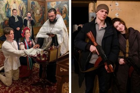 ახალგაზრდა უკრაინელ წყვილს ქორწინების დღეს იარაღის ხელში აღება მოუწია. ეს მას შემდეგ, რაც რუსეთმა უკრაინის წინააღმდეგ სრულმასშტაბიანი ომი დაიწყო და ქვეყნის ხელისუფლებამ გადაწყვიტა, მოხალისეებსაც მისცეს იარაღი.