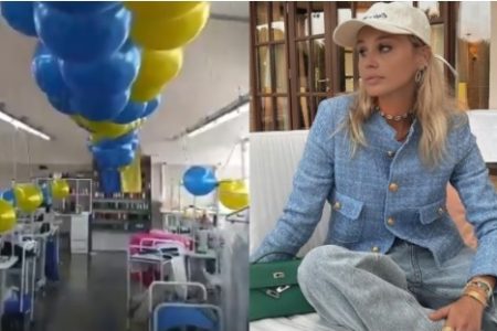ერთ-ერთი ფოტო, რომელიც მან გამოაქვეყნა, დიზაინერის სამუშაო გარემოა, რომელიც უკრაინის ფერებშია მოწყობილი.