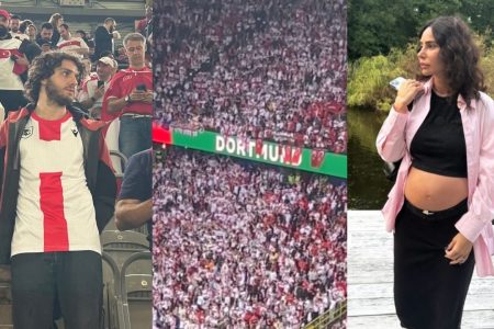 ლელა კილაძე და გიორგი ცაგარელი, გერმანიაში, დორტმუნდში საქართველო-თურქეთის თამაშს დაესწრნენ.